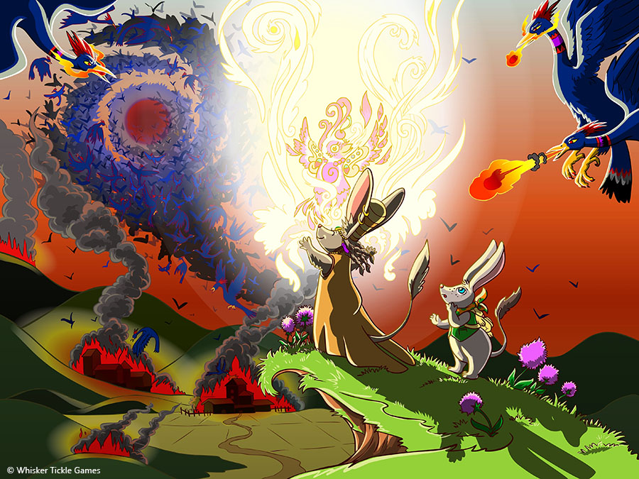 Digital painting and illustrations for the Ratbird Rumble ebook for Whisker Tickle Game in New Zealand. This book tied into the Blazing Bilby Game, combining the illustrated cut scenes from the game with additional artwork to create a storybook companion to the game.